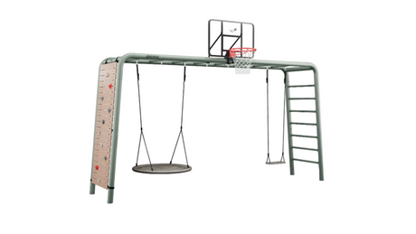 Its robust metal framework makes the BERG PlayBase a reliable structure for kids of all ages to play on, with a 9cm diameter tube connection system designed for rigidity while still feeling lightweight. Each base frame allows up to three accessories to be installed at any one time using carbine hooks.