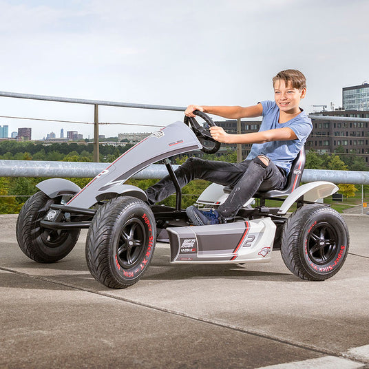 Pneumatic tires, for an extra-smooth ride. These tires have less rolling resistance for easier peddling. This means you can go faster! You'll ride with extra comfort on a BERG XL Go Kart.