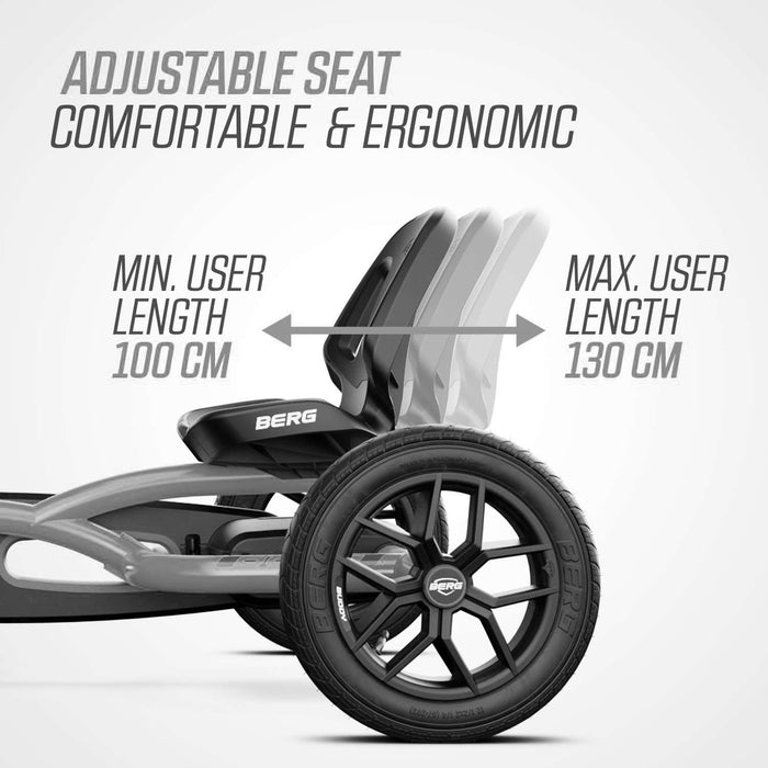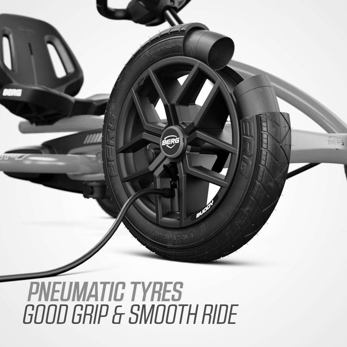 The BERG Buddy has pneumatic tires, for an extra-smooth ride. These tires have less rolling resistance for easier pedaling. This means you can go faster! You'll ride with extra comfort on the BERG Buddy.