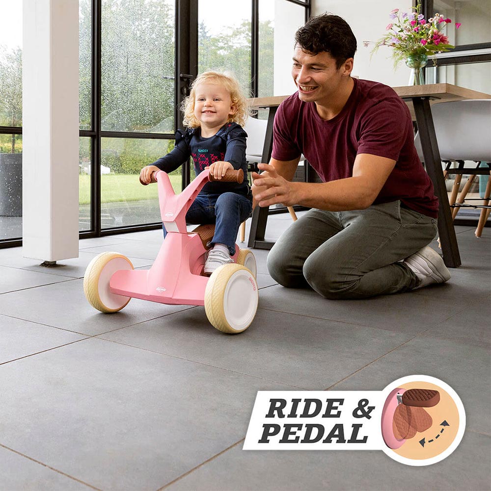 Ideal for children between 10 - 30 months. The Go2 Retro Pink can be used to scoot along by young children without the pedals being in the way. Once a child is old enough, to use the pedals, they can simply be folded down to use. If you have multiple children, off different ages, the pedals are designed to fold in and out in seconds, so there is no need to go looking for screw drivers.