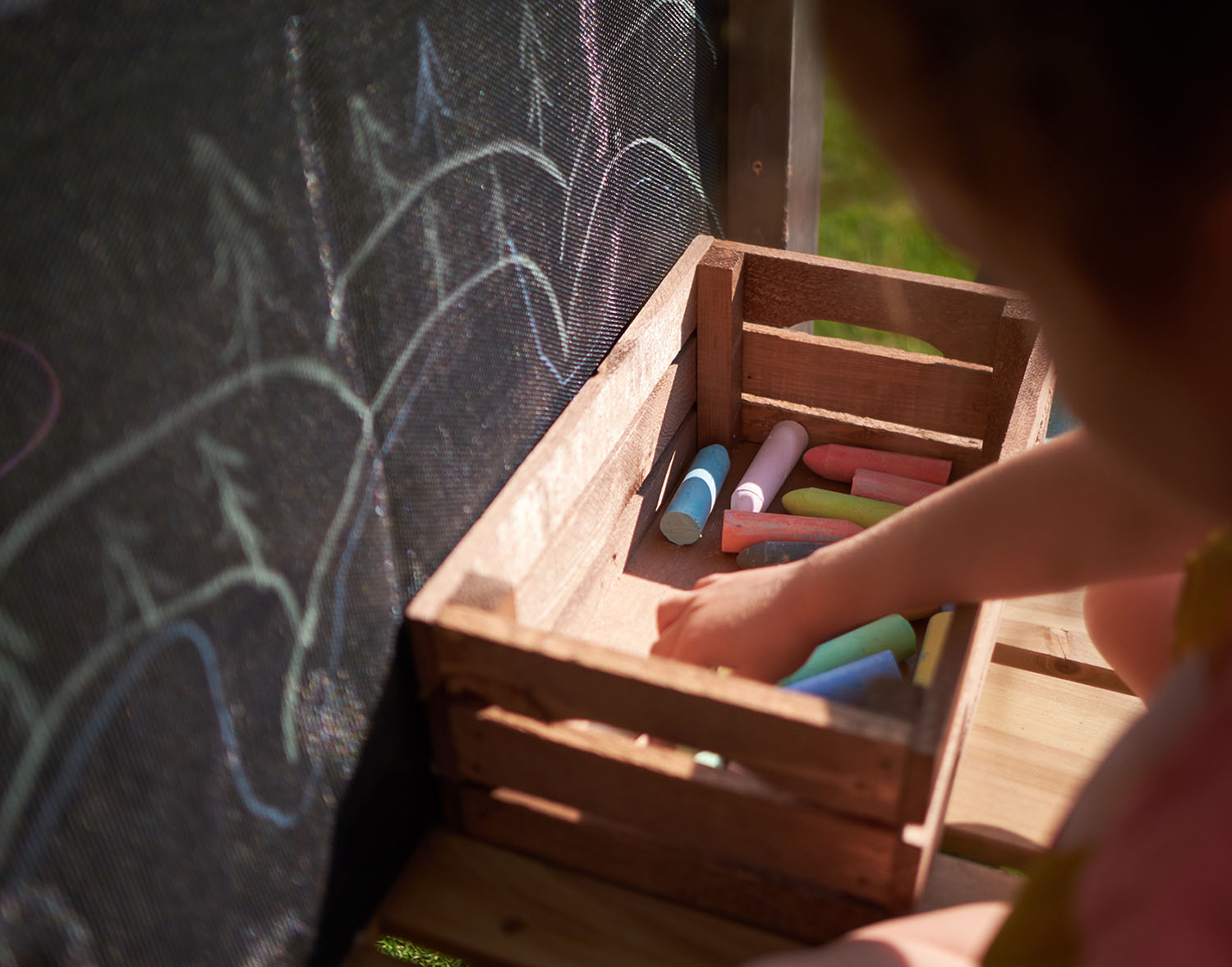 - Fabric chalkboard for creative play.