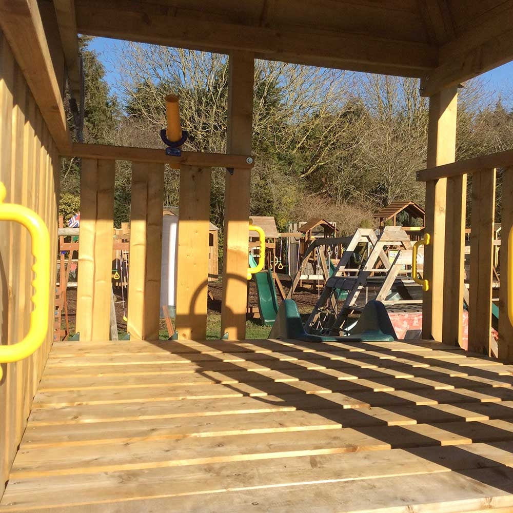 Warthog playcentre looks really smart in any garden with it's quadrant wooden roof. It features a large play platform 1.5m (5ft) x 1.5m (5ft) the play platform is large enough for children playing or socialising. Combine this with all of the other standard features and it is easy to see why the Warthog can keep the older children entertained, as well as offering fun activities for the younger ones.