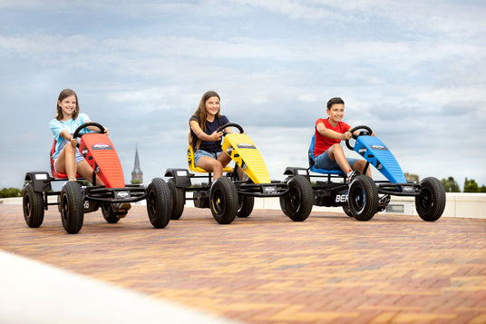 Pneumatic tires, for an extra-smooth ride. These tires have less rolling resistance for easier peddling. This means you can go faster! You'll ride with extra comfort on a BERG XL Go Kart.